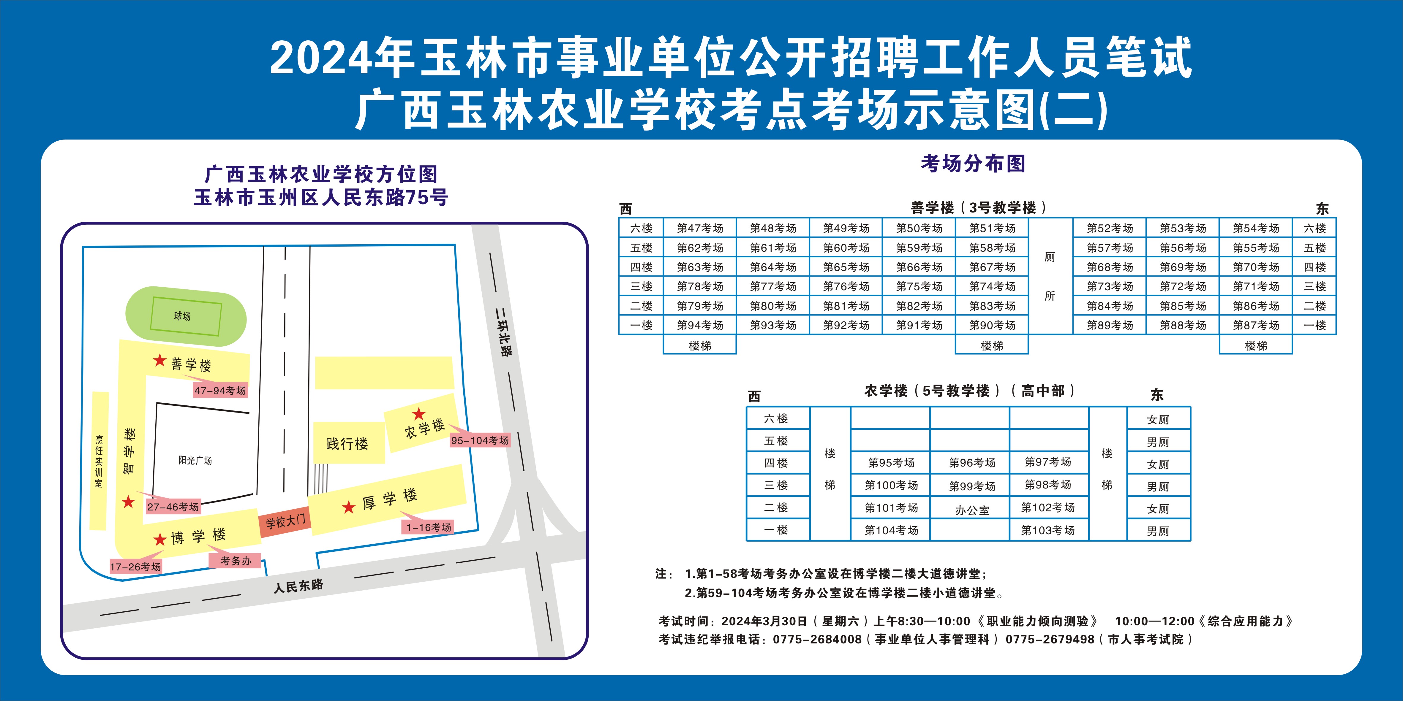 需要特別注意的是:玉林市第一職業(yè)中等專業(yè)學(xué)校考點(diǎn)是設(shè)在該校的東校區(qū)(人民東路東235號(hào));玉林市第一中學(xué)考點(diǎn)是設(shè)在該校的運(yùn)嶺路校區(qū)(二環(huán)北路1228號(hào))!