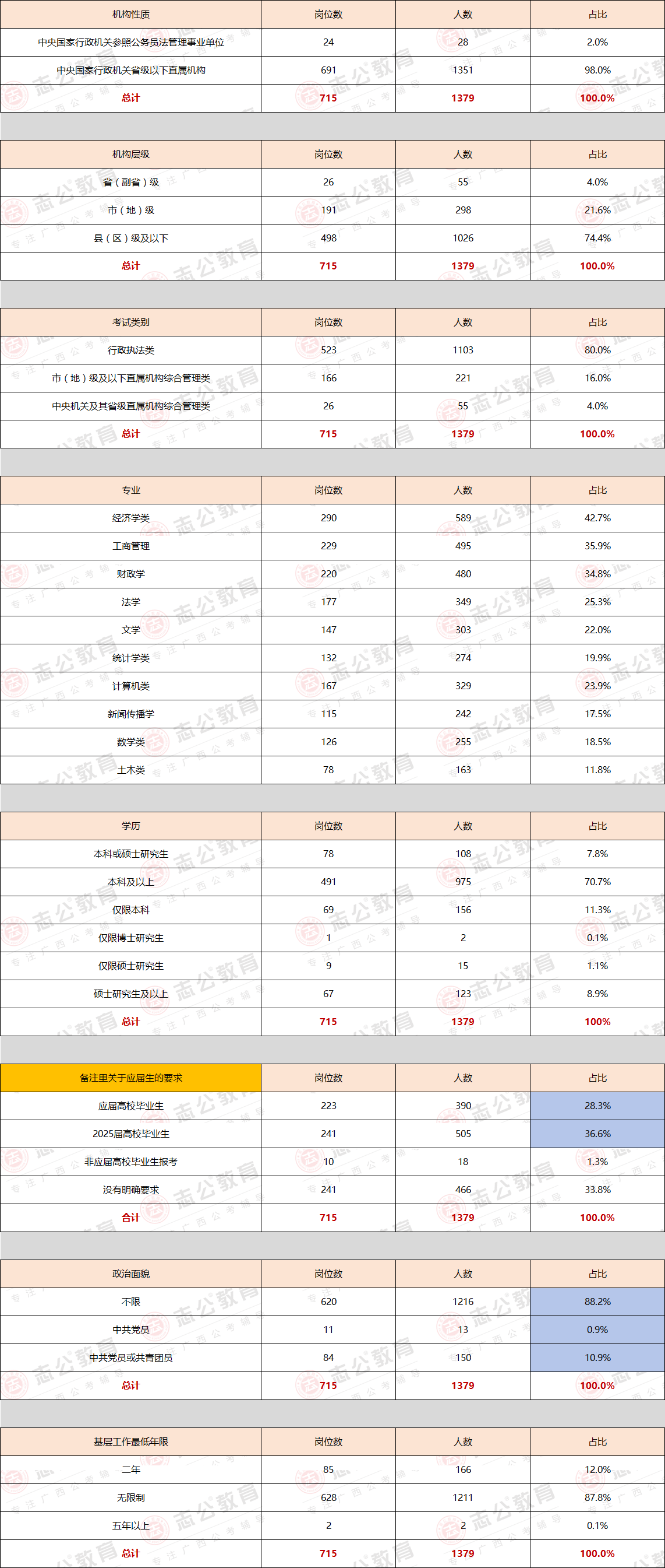 2025國考廣西職位分析:擴招!共715個崗位,招錄人數(shù)1379人!