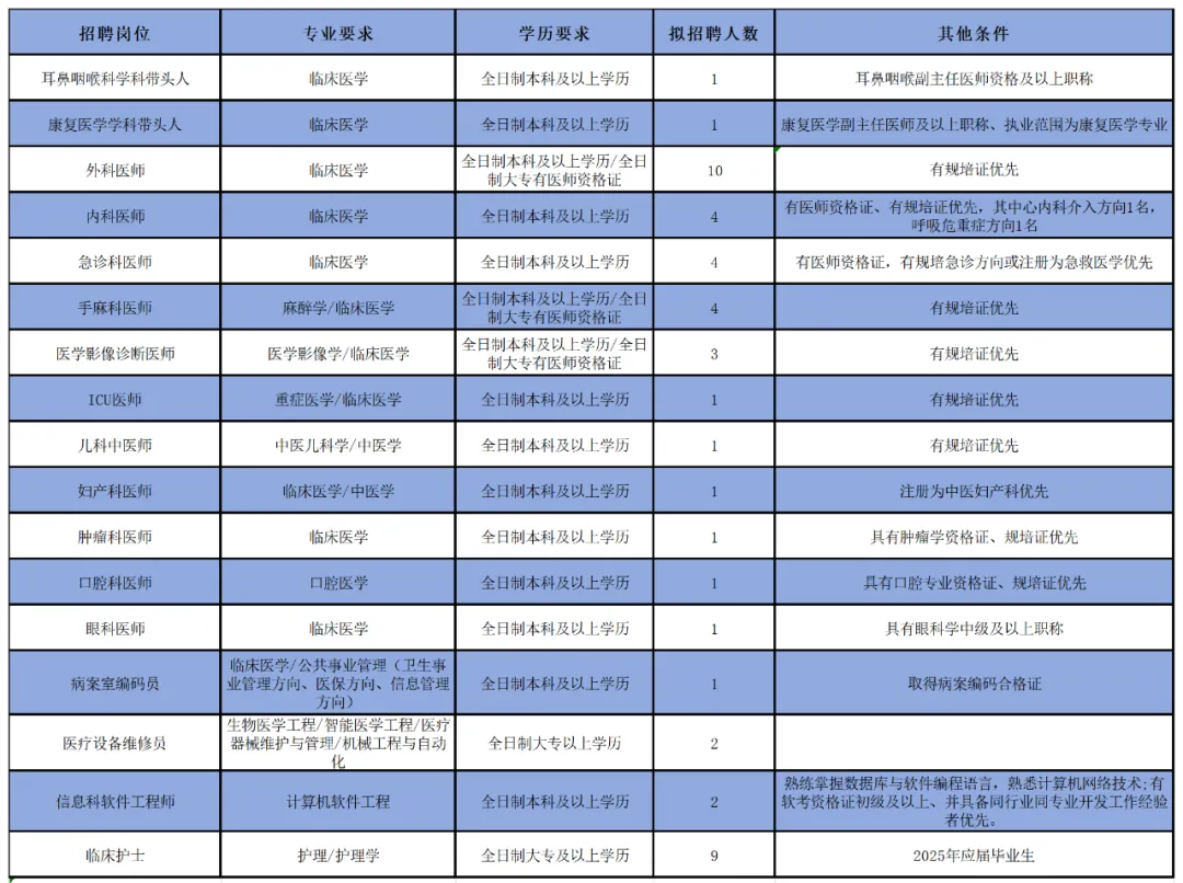 (醫(yī)師崗位長期招聘,招滿即止)