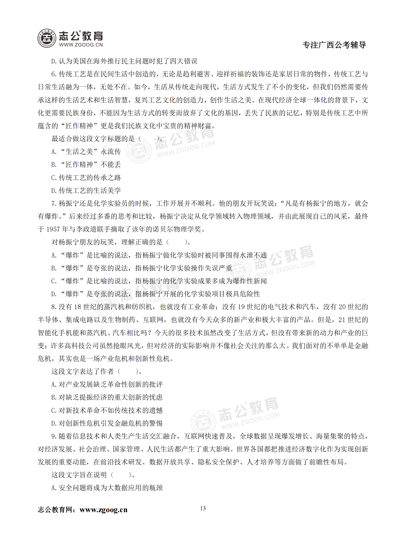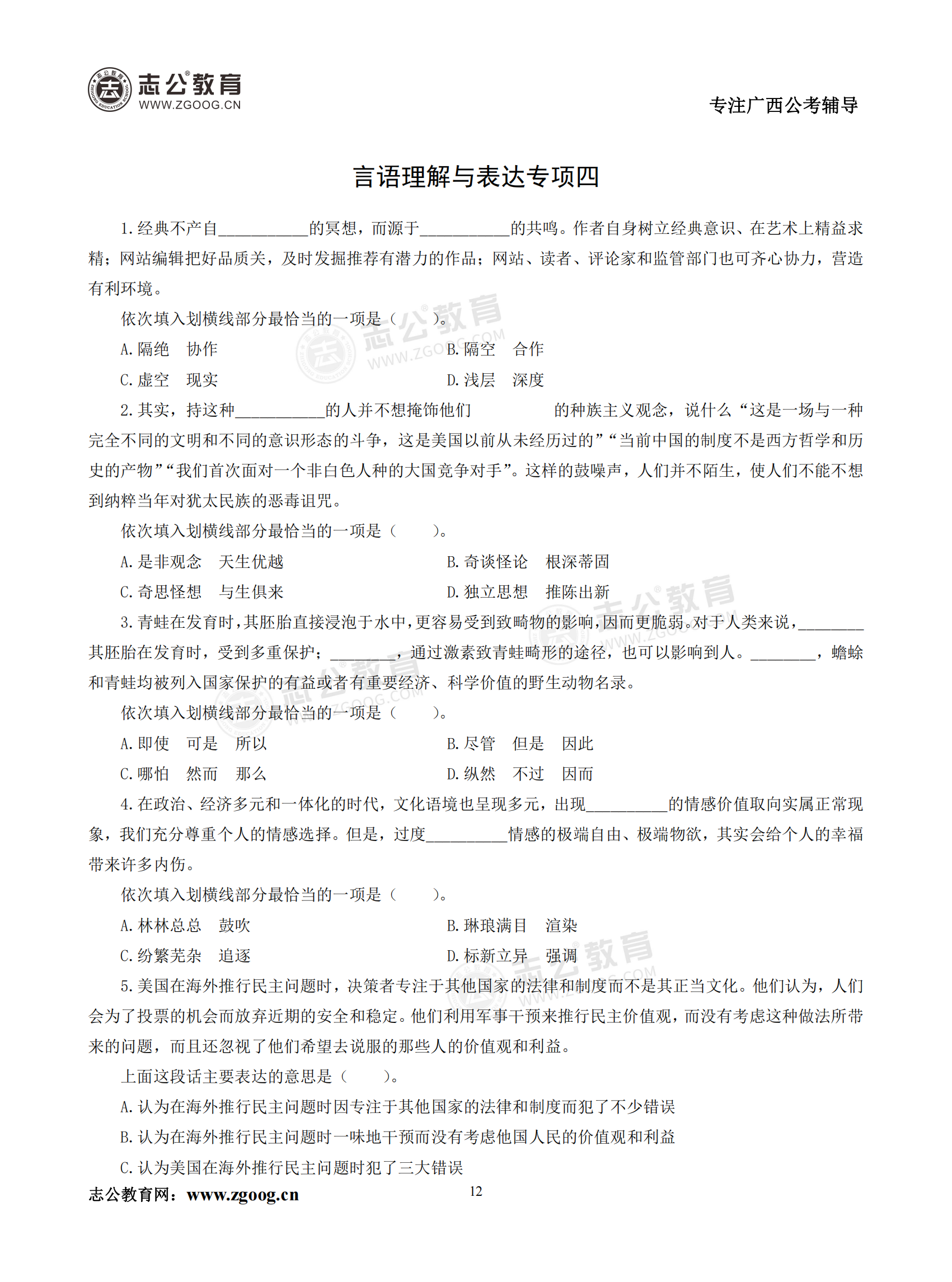 【公考模塊練習(xí)】言語(yǔ)理解題四(試題)