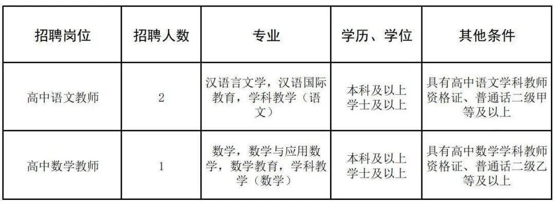 根據發(fā)展需要,學校擬招聘高中語文、高中數學頂崗教師共3人,具體招聘信息如下: