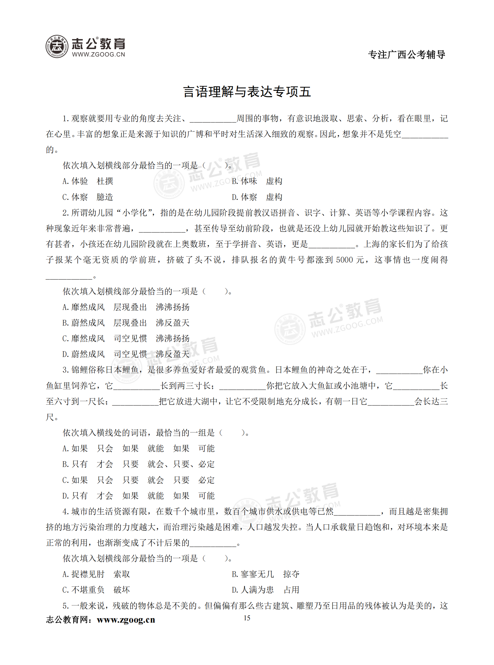 【公考模塊練習(xí)】言語(yǔ)理解題五(試題)