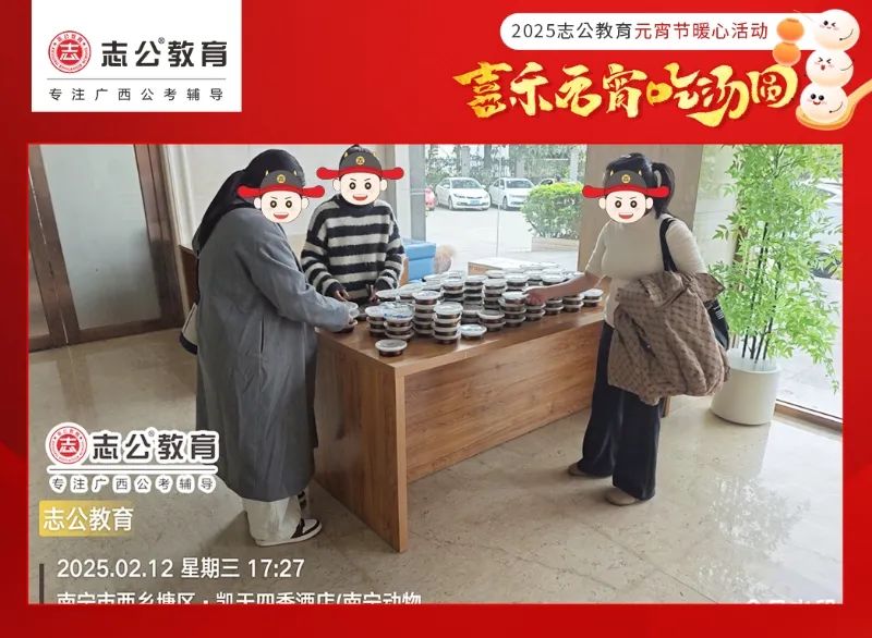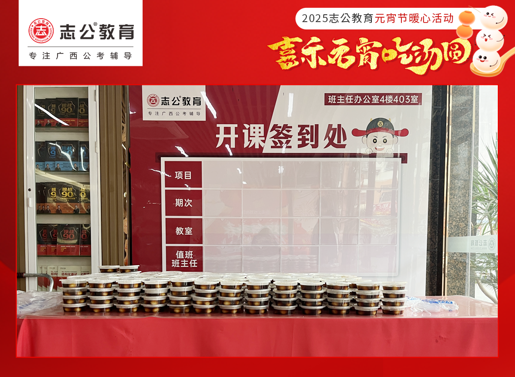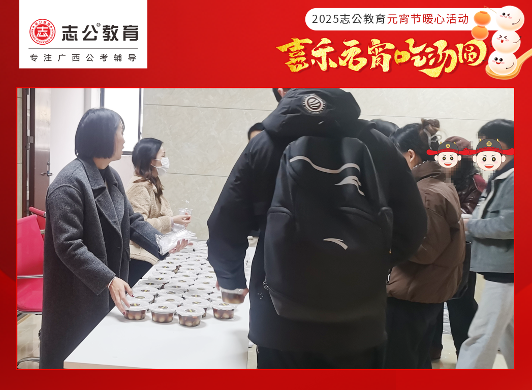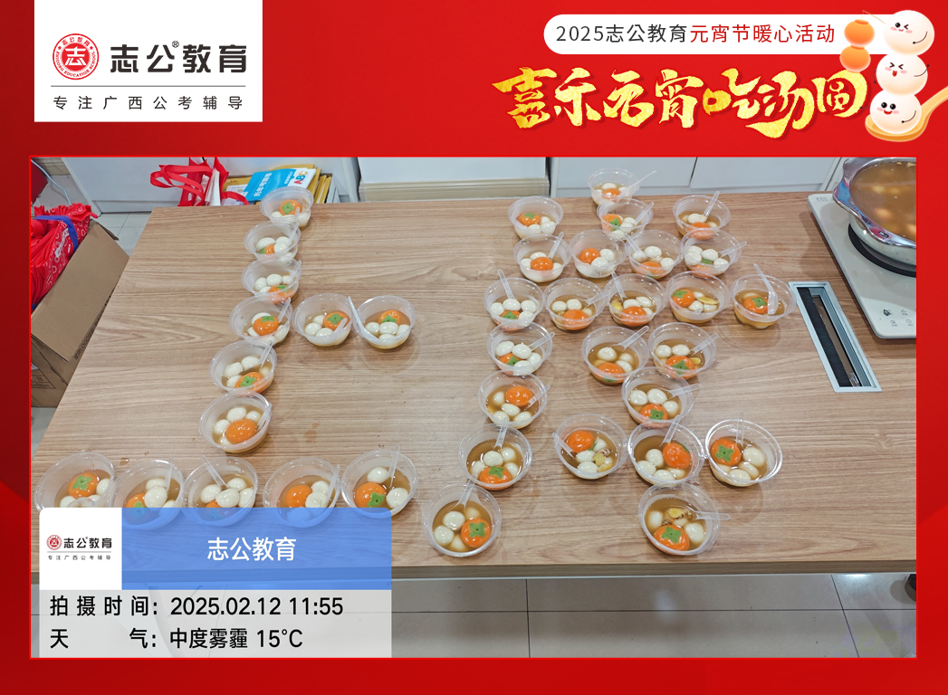 在緊張忙碌的公考備考之路上,每一位學(xué)員都在為了心中的夢(mèng)想全力以赴 。堆積如山的備考資料,一場(chǎng)接一場(chǎng)的模擬考試,長(zhǎng)時(shí)間的學(xué)習(xí)讓他們承受著巨大的壓力 。而這份在元宵節(jié)送上的湯圓,就像冬日里的暖陽(yáng),夏日里的清風(fēng),為他們帶來了片刻的慰藉 。