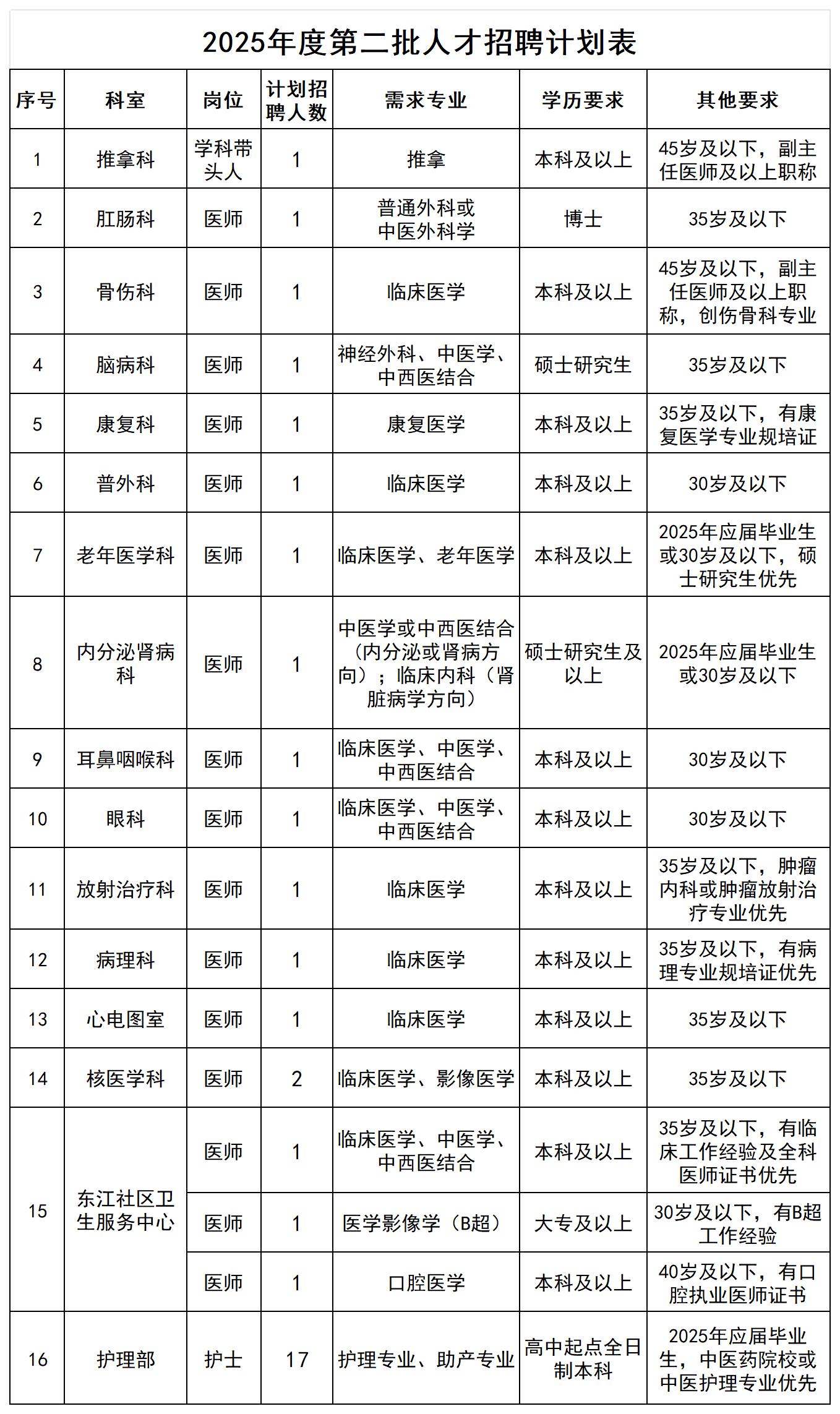 五、具備崗位所需的專業(yè)知識、技術(shù)能力等,醫(yī)師崗位需具有醫(yī)師資格證及醫(yī)師執(zhí)業(yè)證,主治醫(yī)師以下職稱的須持有住院醫(yī)師規(guī)范化培訓合格證或2025年8月前取得住院醫(yī)師規(guī)范化培訓合格證。