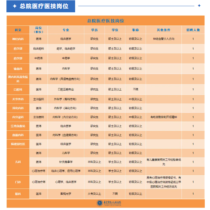 以上崗位均享受醫(yī)院科研獎勵、培訓(xùn)進(jìn)修、晉升職務(wù)職稱等權(quán)利,以及五險(xiǎn)一金、用餐補(bǔ)助、帶薪年休假、工會福利等待遇。