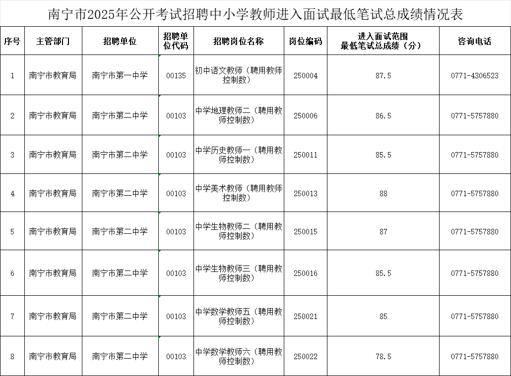 南寧市2025年教師招聘