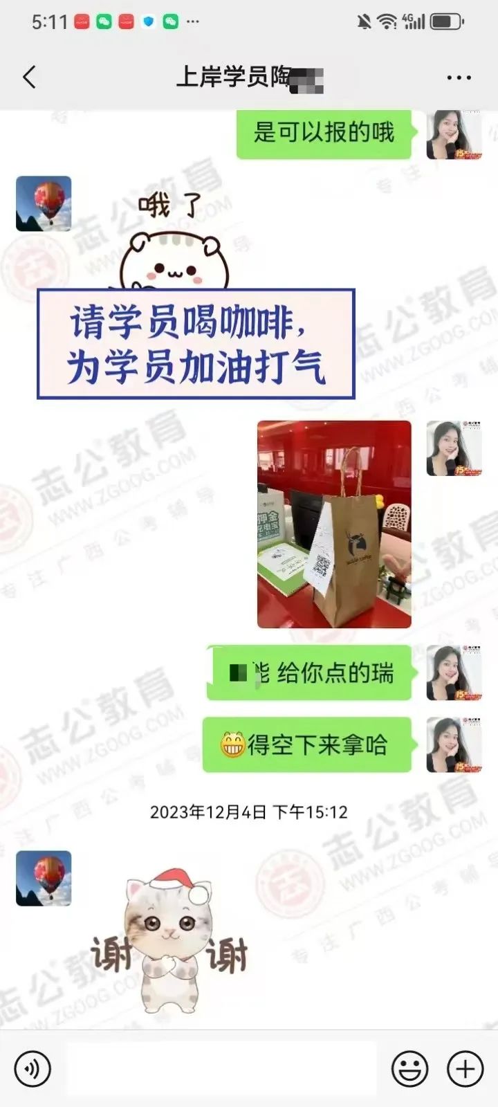為他安排一杯暖心的咖啡,他在第二天也回請了我“帶有西大文化底蘊的瑞幸”。期間,還主動給我轉(zhuǎn)介紹了 3 個同學來報班!在這條逐夢的道路上,我們不僅僅是師生,更是相互信任、相互支持的知心朋友。