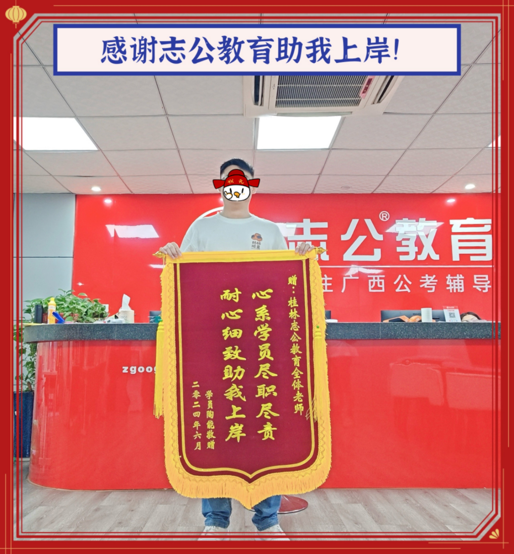 他成功上岸后,滿懷感激地給我們志公教育全體老師送來了錦旗。作為他的報班老師,我很欣慰看到他的努力得到了回報。他的勵志奮斗上岸故事也讓我深受鼓舞,讓我深刻認識到,只要有堅定的目標,持之以恒的努力,善于借鑒他人成功的經(jīng)驗,我們也能在工作中取得更多的成就與進步!幫助更多學員實現(xiàn)他們的夢想!向?qū)W員學習,也向所有致力于努力備考奮斗的學員們致敬!