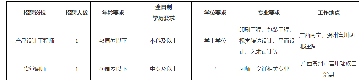 本次公開(kāi)招聘2人,需求崗位、人數(shù)、學(xué)歷專業(yè)要求等資格條件,工作內(nèi)容、職位要求詳見(jiàn)附件《廣西真龍彩印包裝有限公司2025年第一批次人才招聘需求表》