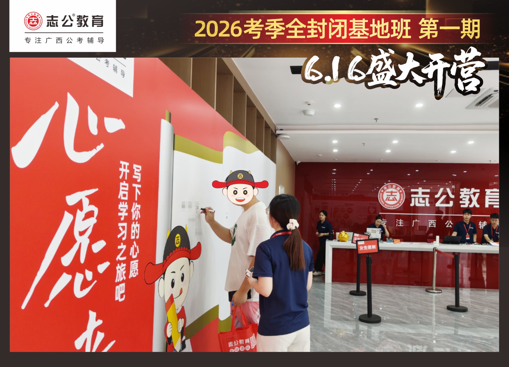 6月16日,志公教育基地班在萬(wàn)眾翹首以盼中,正式拉開(kāi)帷幕!來(lái)自各地的學(xué)員們,懷揣著夢(mèng)想與憧憬匯聚于此,以“躍龍門”的非凡勇氣和“走紅毯”般的自信姿態(tài),鄭重地書(shū)寫(xiě)下屬于自己的“上岸心愿”。在這場(chǎng)充滿儀式感與溫馨氛圍的啟程儀式中,開(kāi)啟了新篇章。
