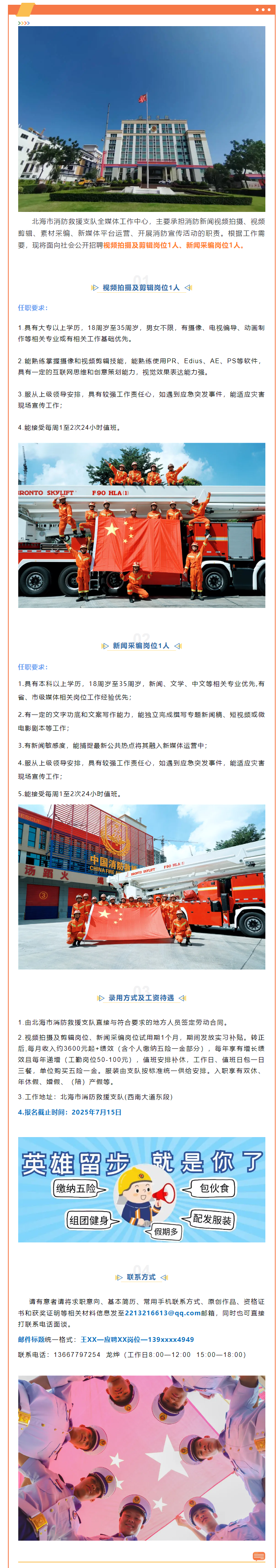 原文標題:北海消防全媒體中心招聘啦!還等什么,快來報名吧~