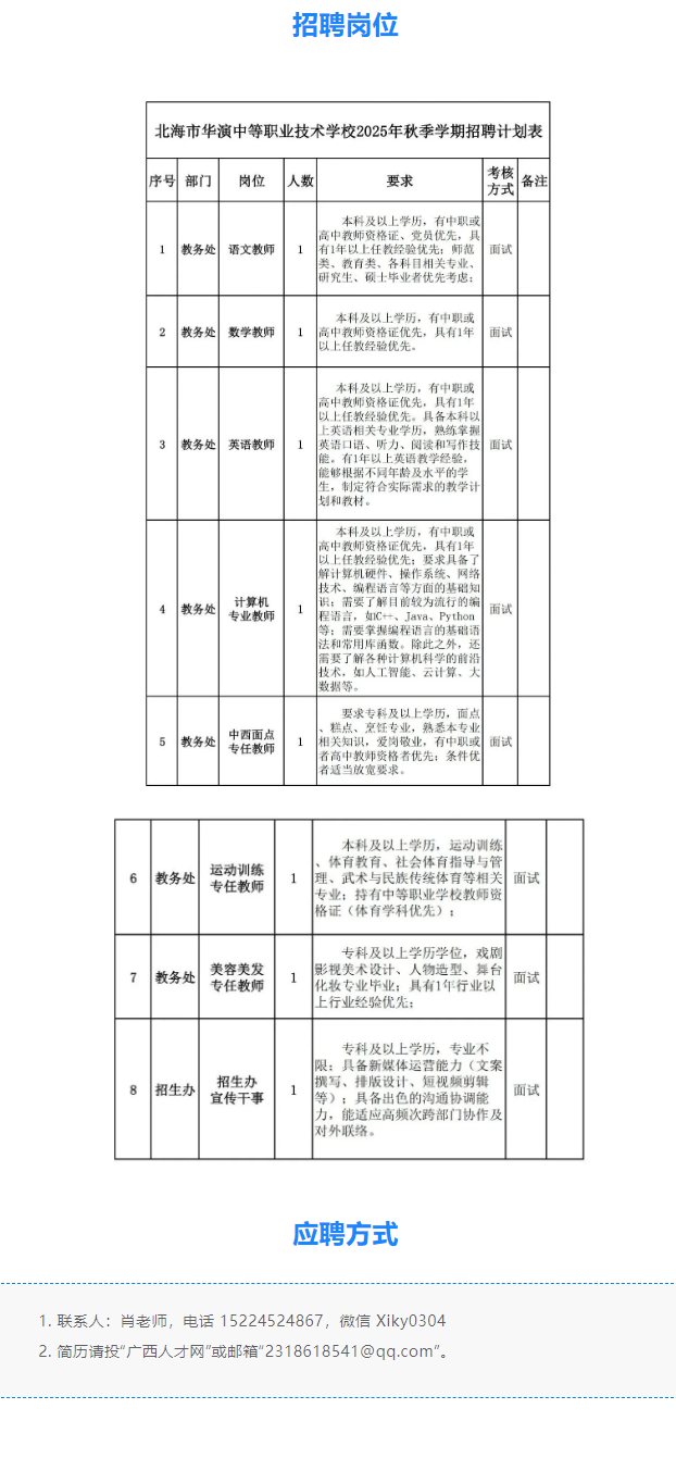 2025年北海市華演中等職業(yè)技術(shù)學(xué)校招聘啟事