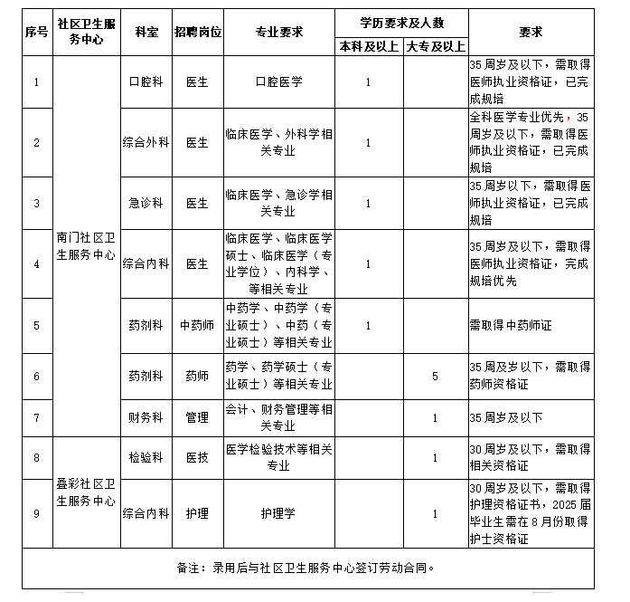 根據社區(qū)衛(wèi)生服務中心工作需要,現(xiàn)將2025年度(第二批)招聘崗位及有關事項公布如下: