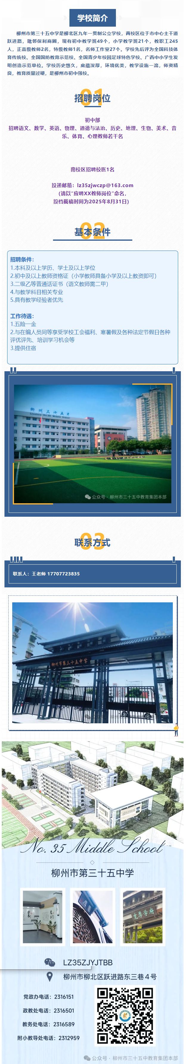 2025年柳州市第三十五中學招聘合同制教師若干名