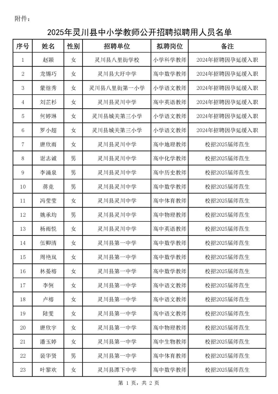 2025年靈川縣中小學(xué)教師公開招聘擬聘用人員名單公示