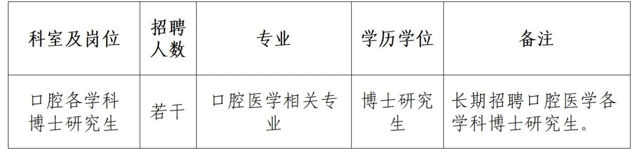 人才條件:50歲以下,口腔醫(yī)學相關(guān)專業(yè)研究生畢業(yè),獲博士學位。