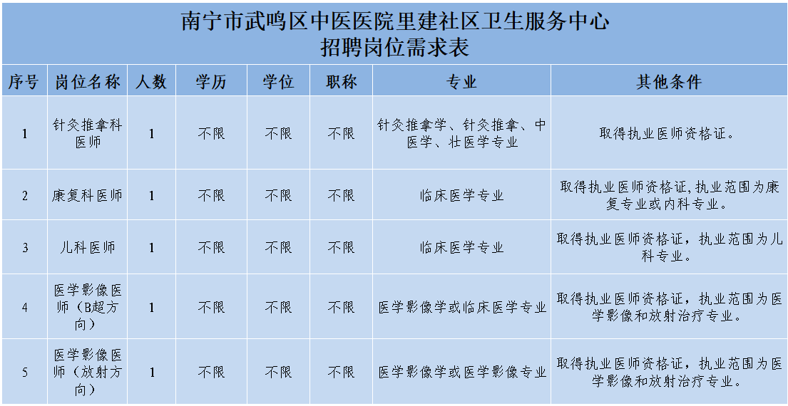 原文標題:2025年南寧市武鳴區(qū)里建社區(qū)衛(wèi)生服務中心招聘啟事