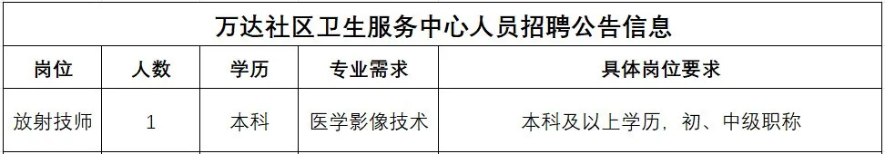 2025年萬達社區(qū)衛(wèi)生服務中心人員招聘公告