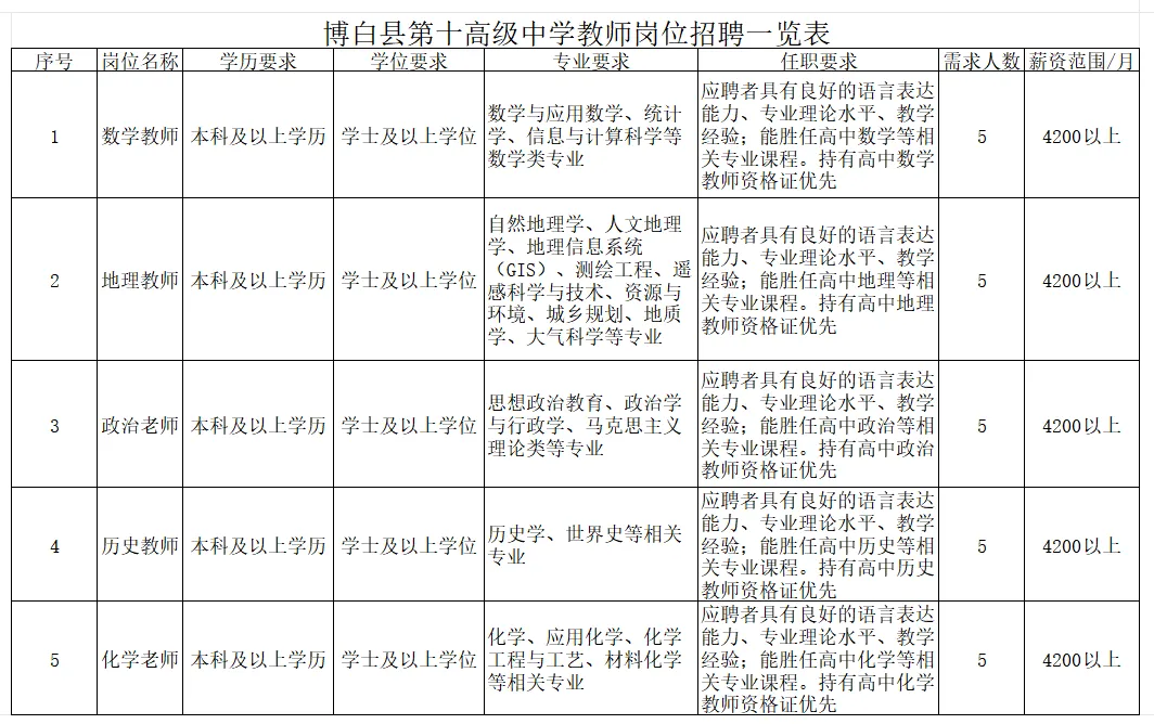 2026年博白縣第十高級中學(xué)教師招聘啟事